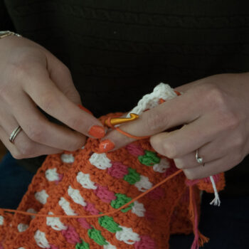 Het klinkt verleidelijk om die hele grote deken mee te nemen, maar waar laat je die? Voor in de auto of de wachtkamer kies ik een kleiner project. Zoals sokken, granny squares of een sjaal.