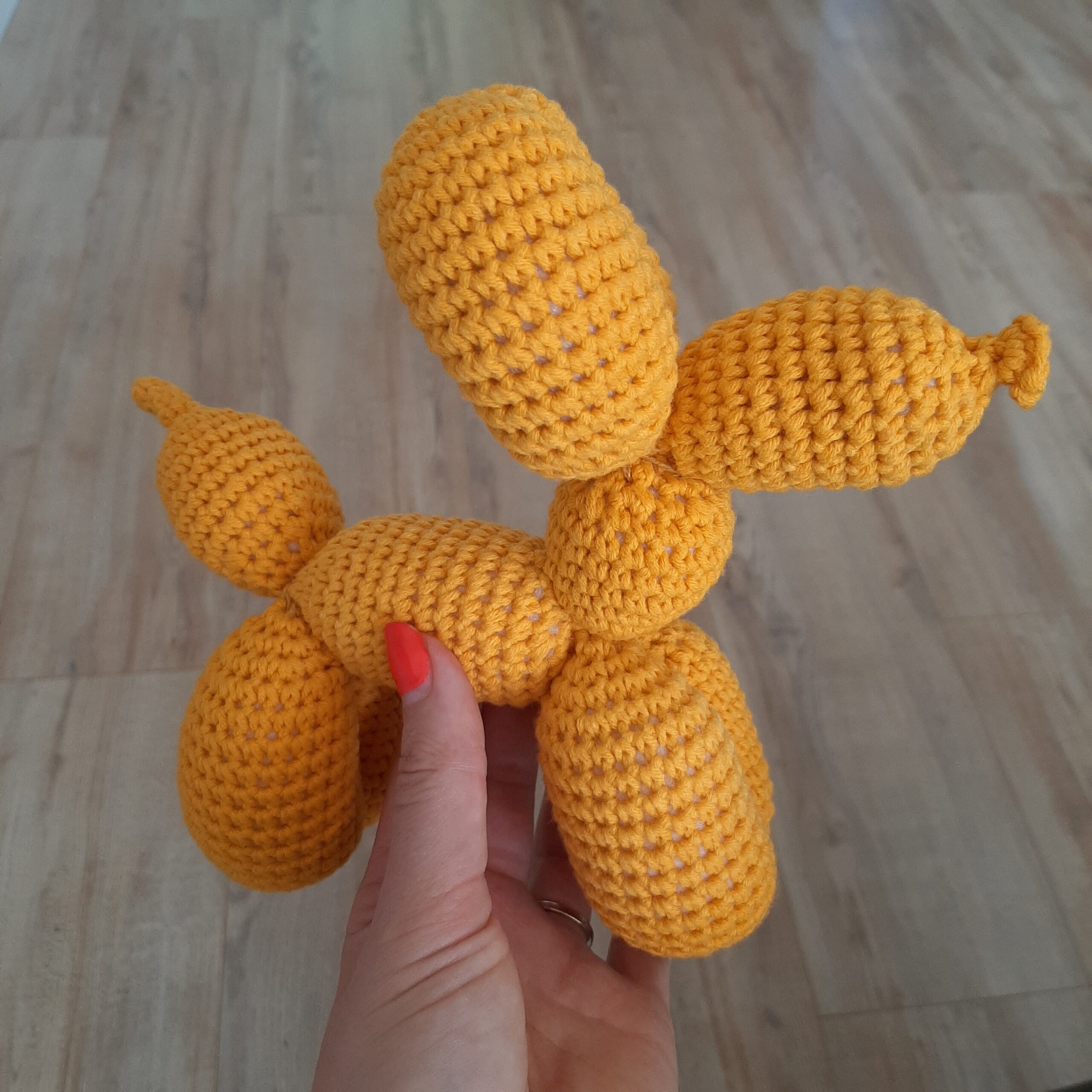 Je haakt de figuurtjes om een tuimelbal waardoor deze vrolijk in de rondte tuimelt.