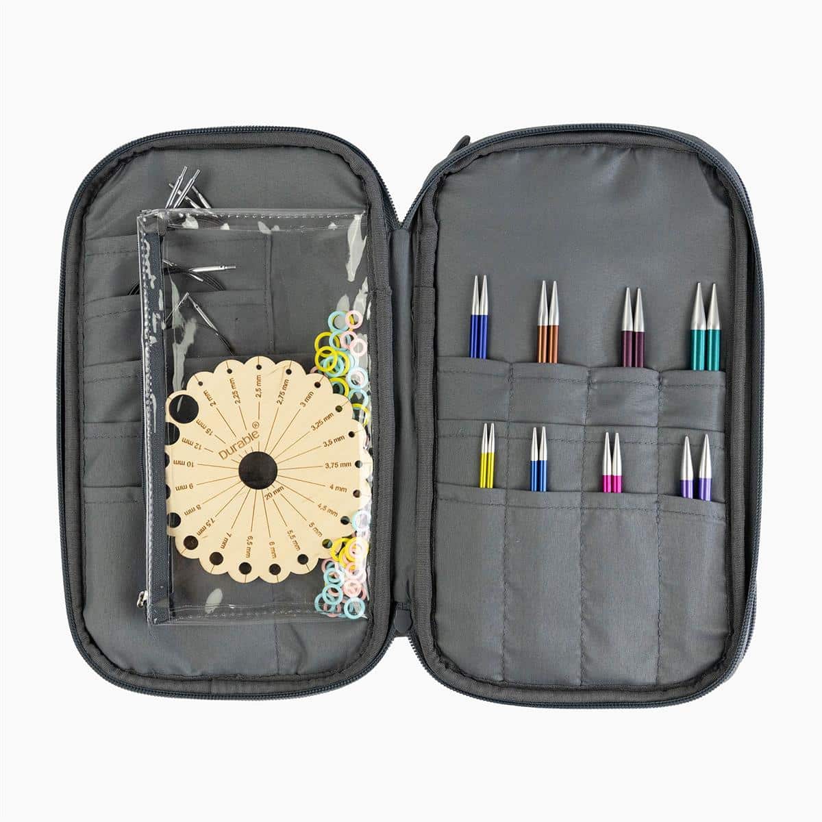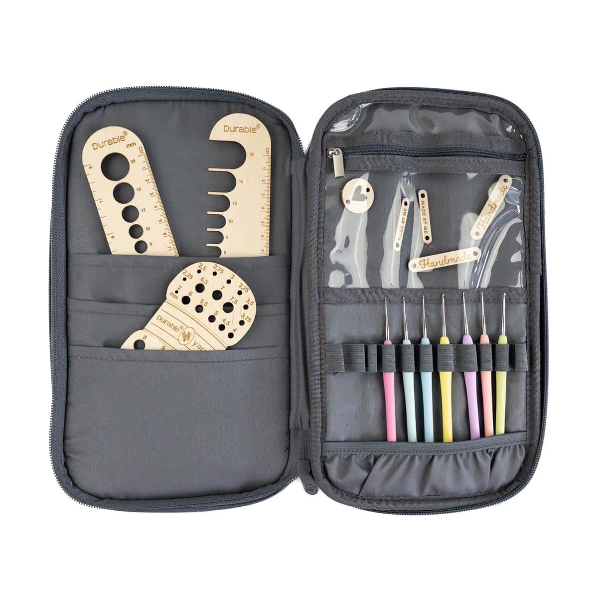 Berg je haaknaalden, DPN’s (double point needles), steekmarkeerders, schaartje en andere accessoires netjes op in deze haaketui van Durable. Al je gereedschap netjes en overzichtelijk bij elkaar!