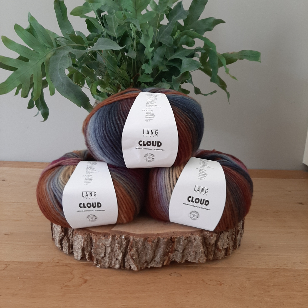 In het pakket 3 bollen Cloud in een kleur naar keuze, met geprint patroon. Een haaknaald is niet inbegrepen, advies is 7mm.