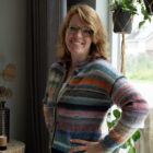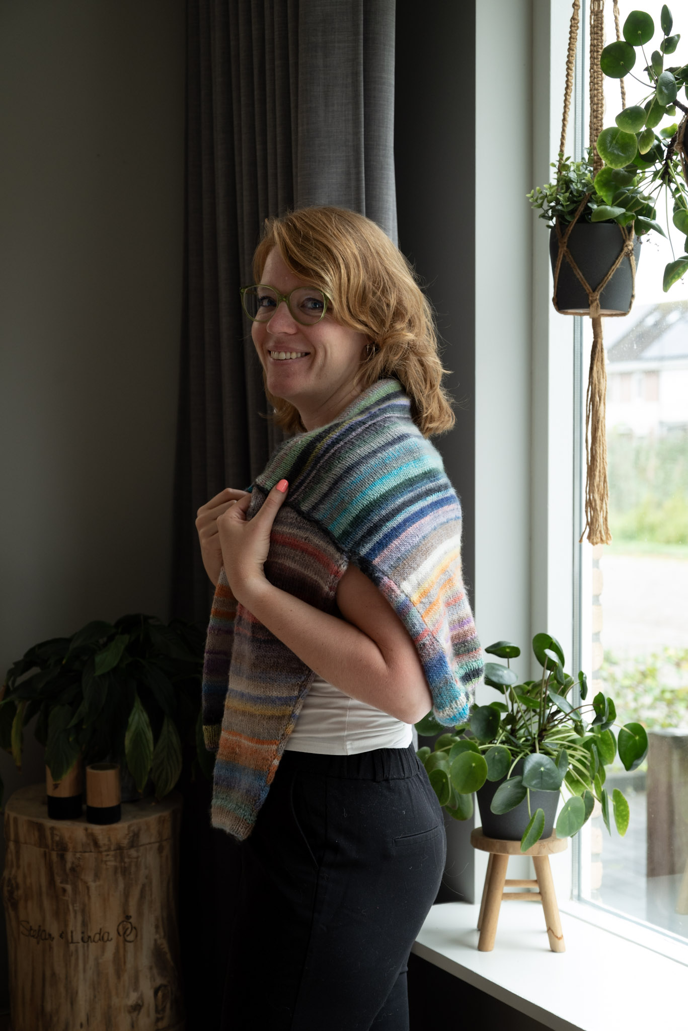 Dit vestje is gemaakt met Lang Yarns Infinity. Volop kleur in 1 bol, van 100% Merino extra fine. Het is een kort aansluitend model met iets ‘off-shoulder’ mouwen.