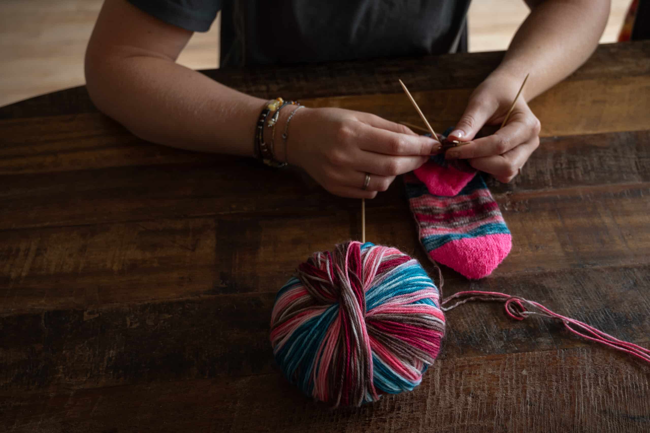 Lang Yarns move is sokkenwol met veel kleur. Op zichzelf voldoende voor een paar vrolijke sokken. Voor de afwisseling kun je er een effen sokkenwol aan toevoegen. Voor bijvoorbeeld de hiel-teen-boord in contrastkleur.