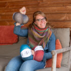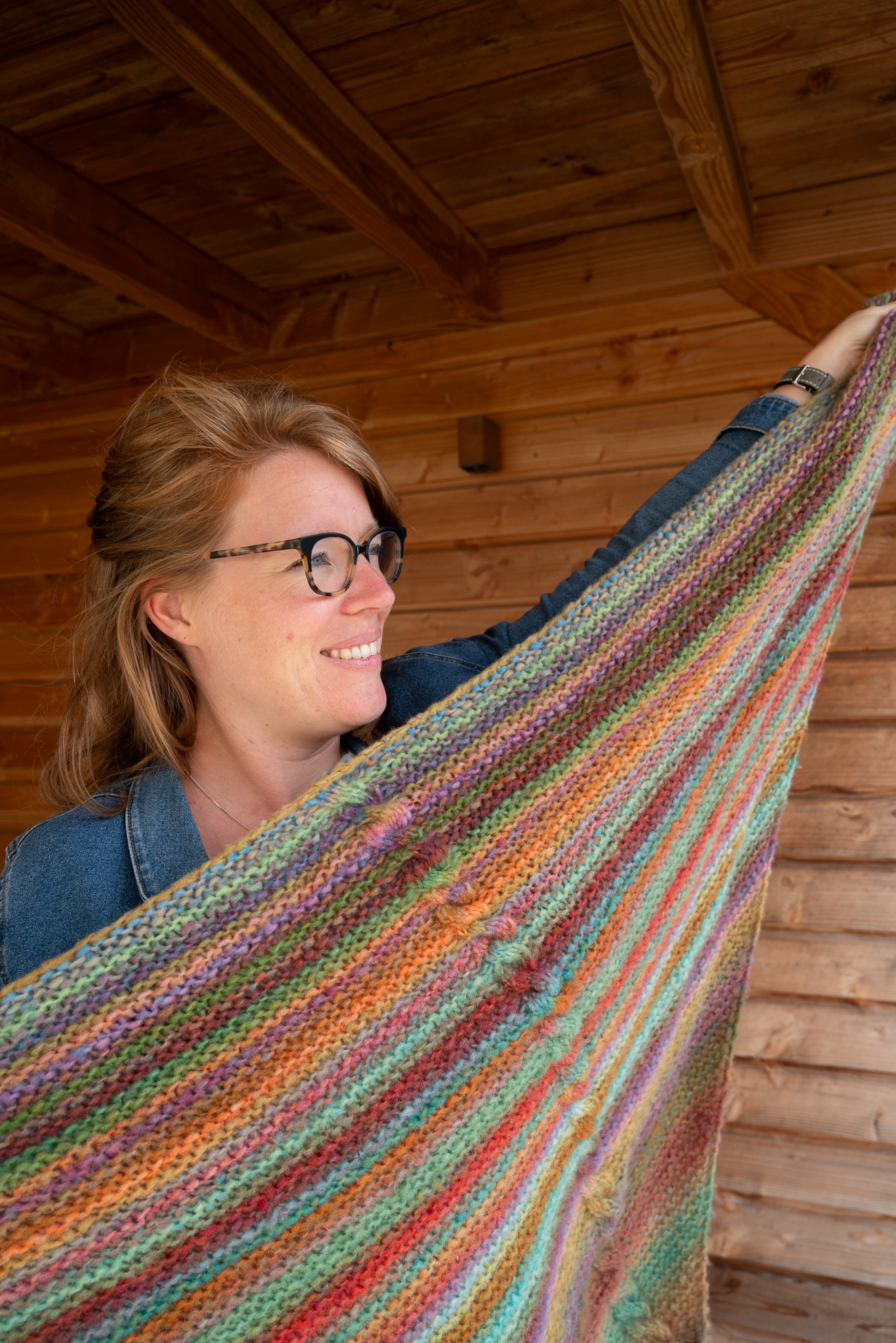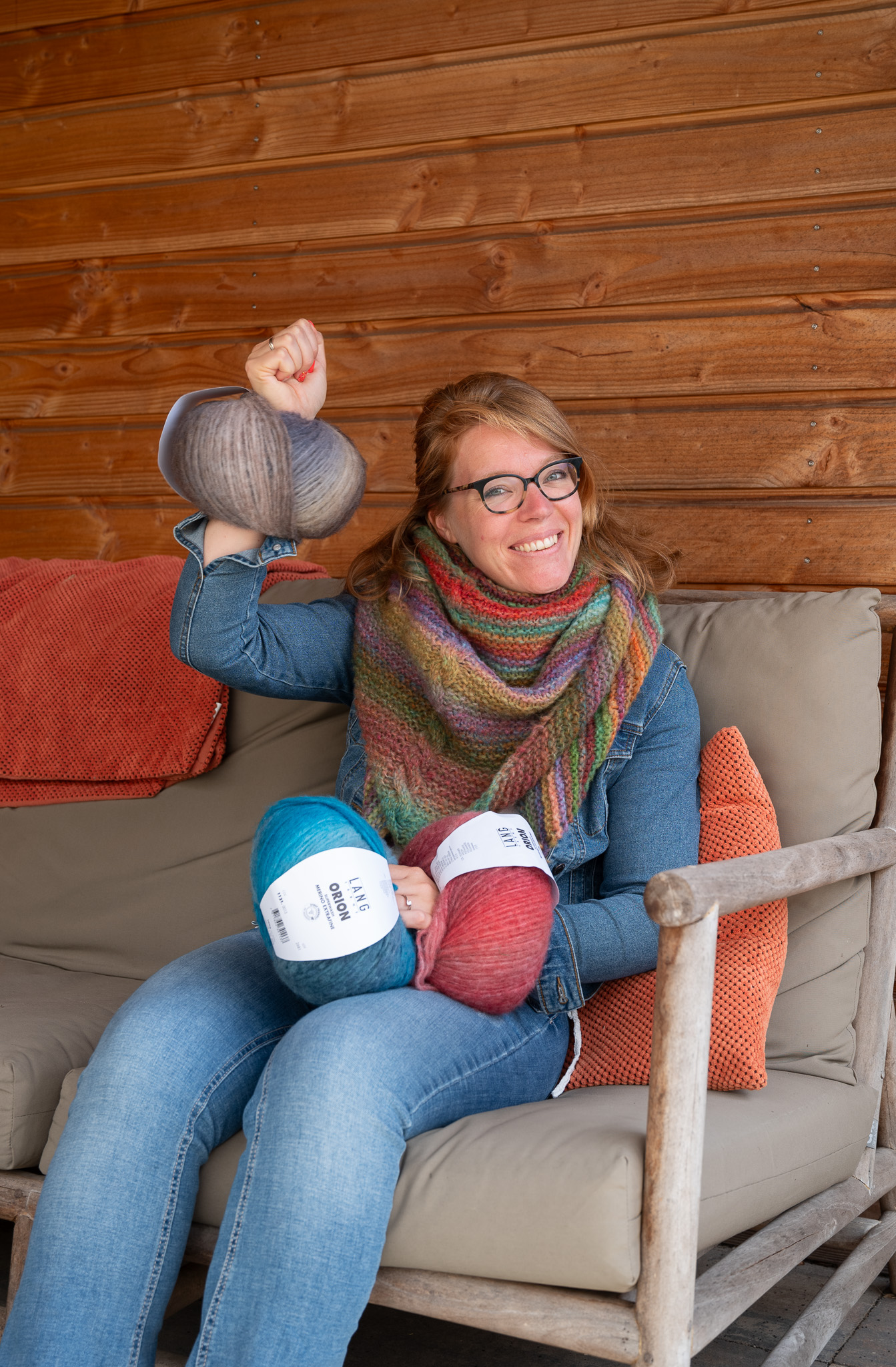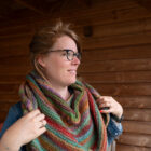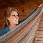 Een royale omslagdoek met een mooie kabel in het midden. Deze kun je op verschillende manieren om je heen slaan op frisse dagen. Deze versie brei je met 2 bollen Langyarns Orion. Merino-garen met een rustig verloop. Het voelt erg zacht aan op je huid tijdens het dragen. Het garen is daarnaast ook erg prettig om mee te breien (splijt niet) op naalden 6-7mm.